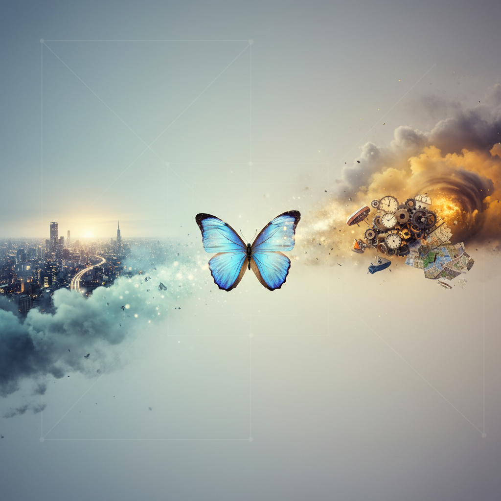 Įsivaizduokite situaciją: ryte suskambus žadintuvui, nusprendžiate pasnausti dar penkias minutes. Dėl šio sprendimo pavėluojate į įprastą autobusą, tenka laukti kito. Įlipę į vėlesnį autobusą, atsisėdate šalia nepažįstamo žmogaus, su kuriuo užsimezga pokalbis. Tas pokalbis virsta darbo pasiūlymu, kuris kardinaliai pakeičia jūsų karjerą, gyvenamąją vietą ir finansinę padėtį. Arba atvirkščiai – tos penkios minutės miego lemia, kad kelyje susiduriate su spūstimi, kurios būtumėte išvengę, ir praleidžiate svarbų susitikimą. Tai yra klasikinis pavyzdys, iliustruojantis koncepciją, kuri mokslo ir populiariosios kultūros pasaulyje žinoma kaip **drugelio efektas**. Nors dažnai apie tai kalbame kaip apie likimą ar atsitiktinumą, už šio reiškinio slypi sudėtinga matematikos ir fizikos teorija, kuri teigia, kad mažyčiai pradiniai pokyčiai gali sukelti milžiniškas, nenuspėjamas pasekmes ateityje.