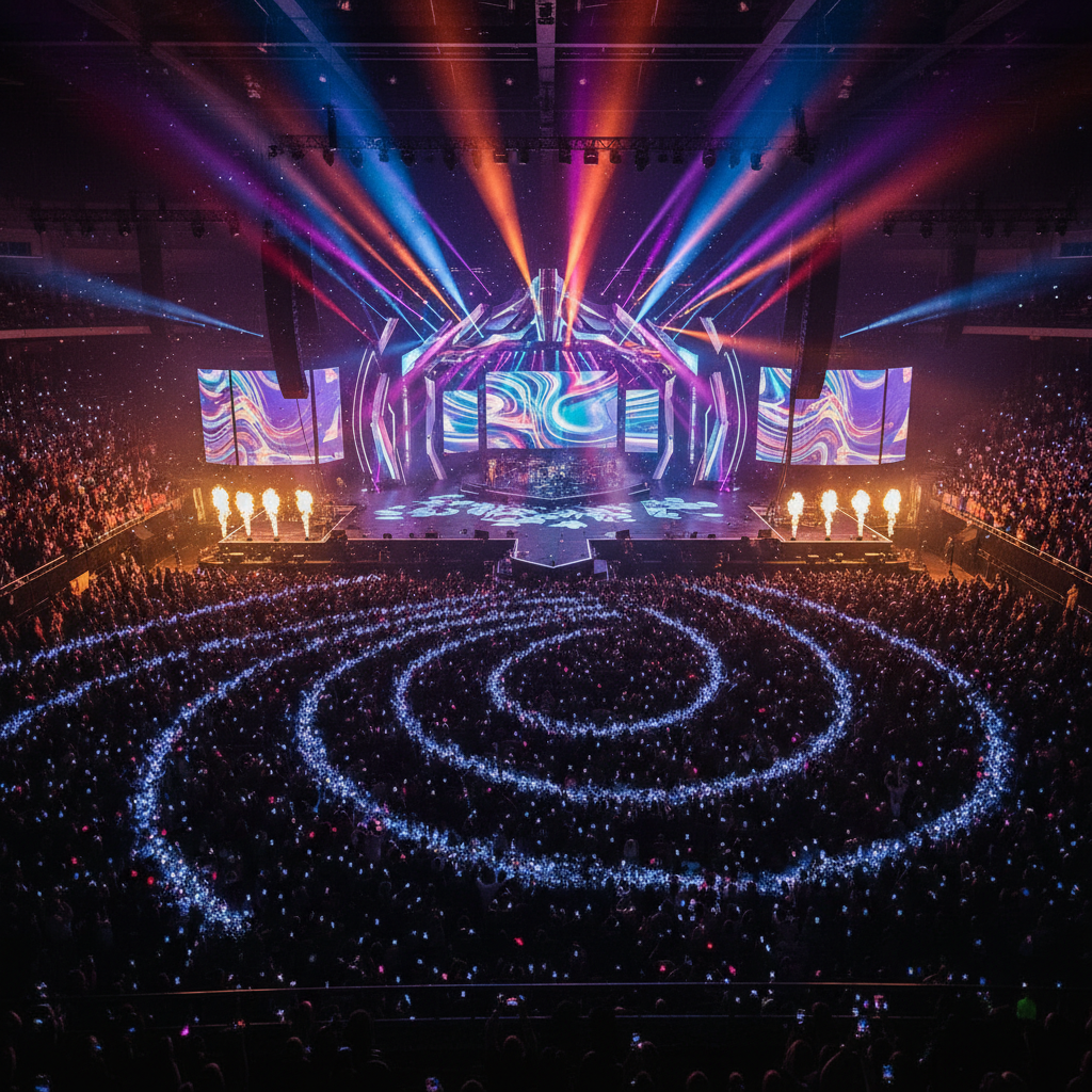 - Daugiafunkciniai ekranai: Scenos gilumoje ir šonuose esantys ekranai transliavo ne tik atlikėją, bet ir specialiai sukurtas vizualizacijas, kurios papildė dainų tekstus ir kūrė kinematografinį įspūdį.
