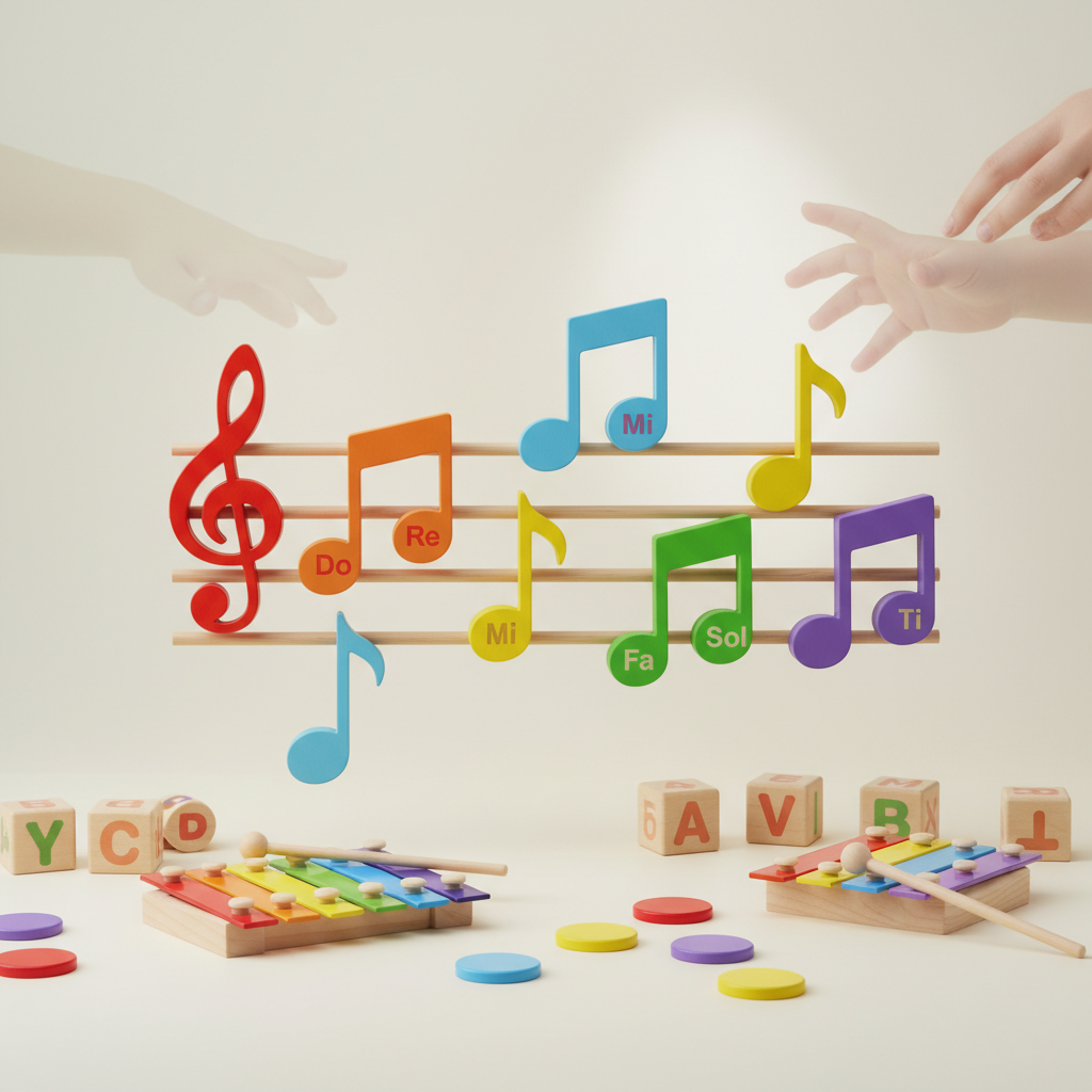 Be tradicinių natų sąsiuvinių, galima naudoti įvairius mokomuosius žaislus, plakatų rinkinius, „Do–Re–Mi“ korteles ar paprastus instrumentus – ksilofoną, pianiną, gitarą. Šios priemonės leidžia vaikui praktikuotis ir kartu smagiai leisti laiką. Bibliotekose ir internetinėse platformose galima rasti daug nemokamų pratimų ir dainelių, kurie padeda lavinti klausą.